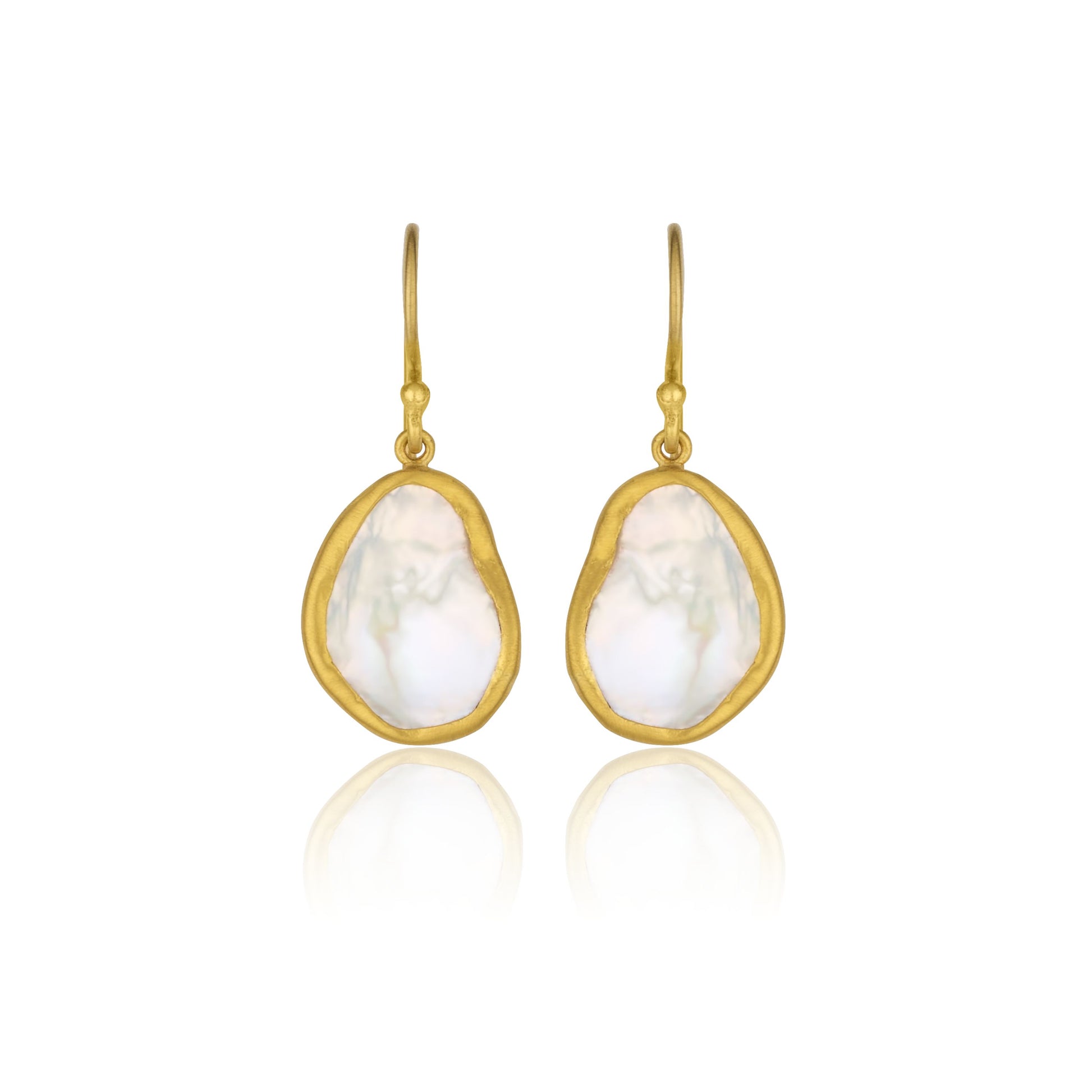 24k all gold “Karin” golden gray keshi pearl drop earrings with 22k earwires